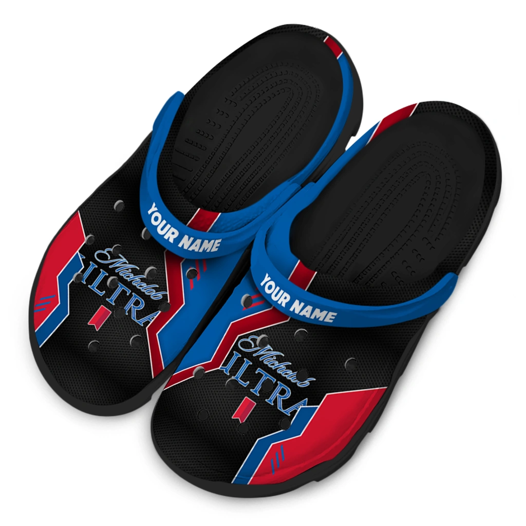 Personalized Michelob Ultra Strikes Black Blue Clogs
