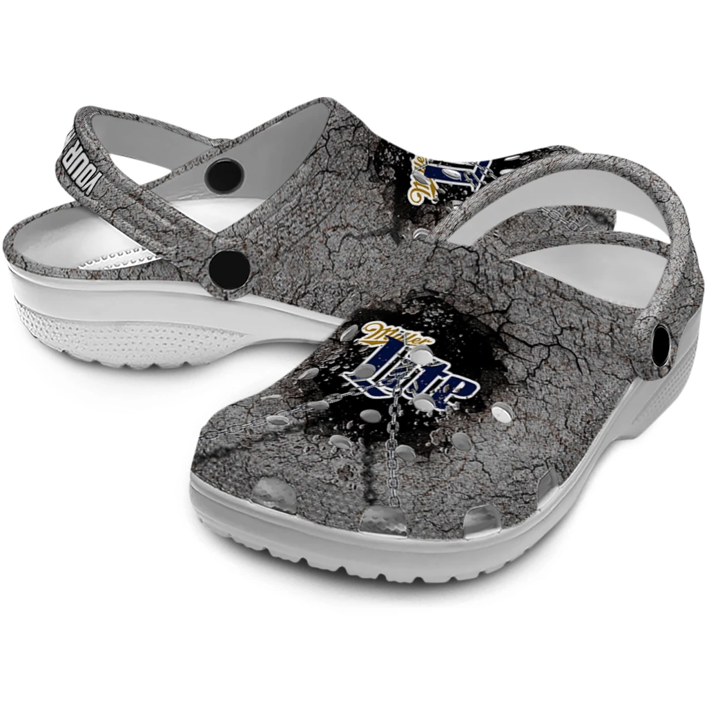 Personalized Miller Lite Cracked Concrete Gray Black Clogs