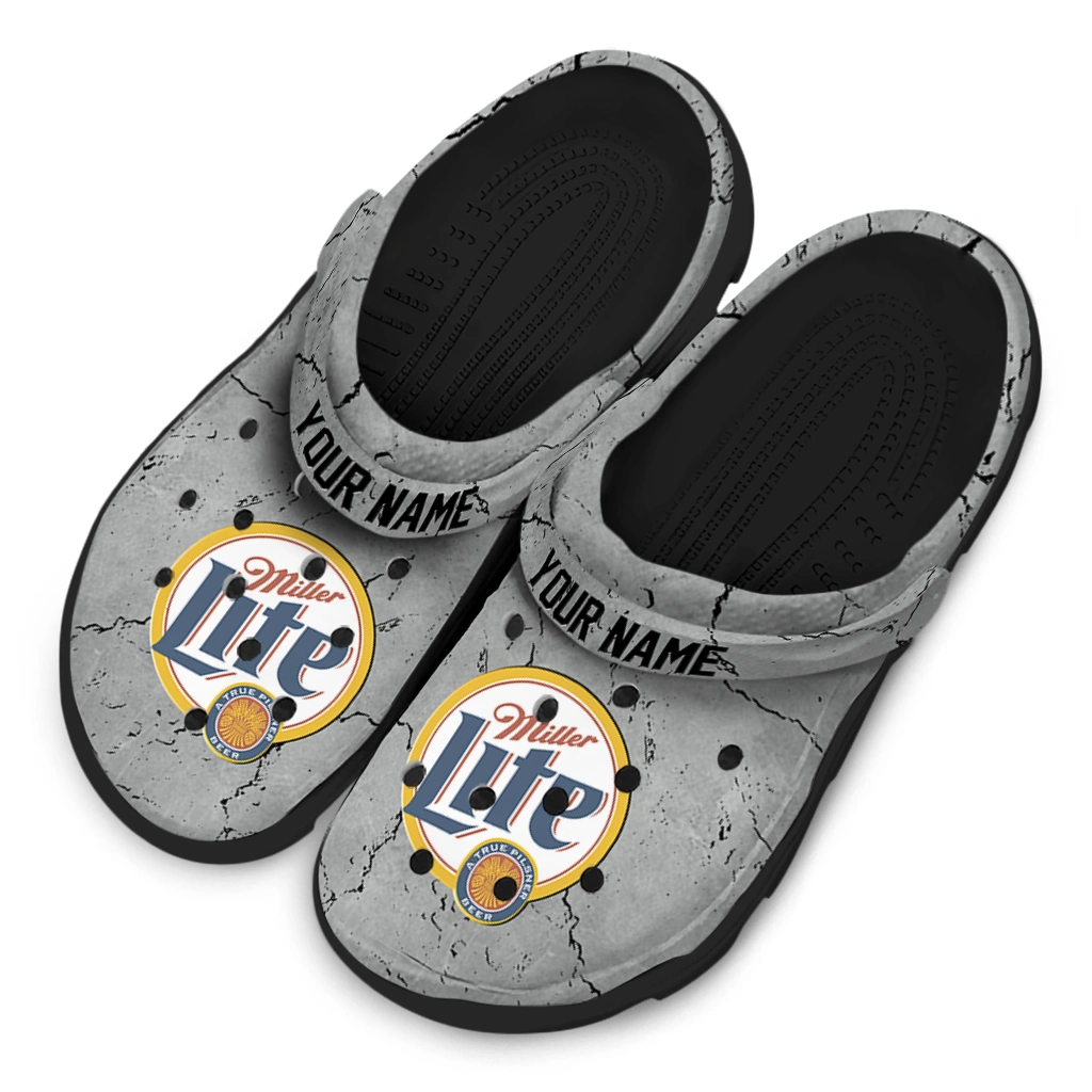 Personalized Miller Lite Cracked Pattern Gray Clogs