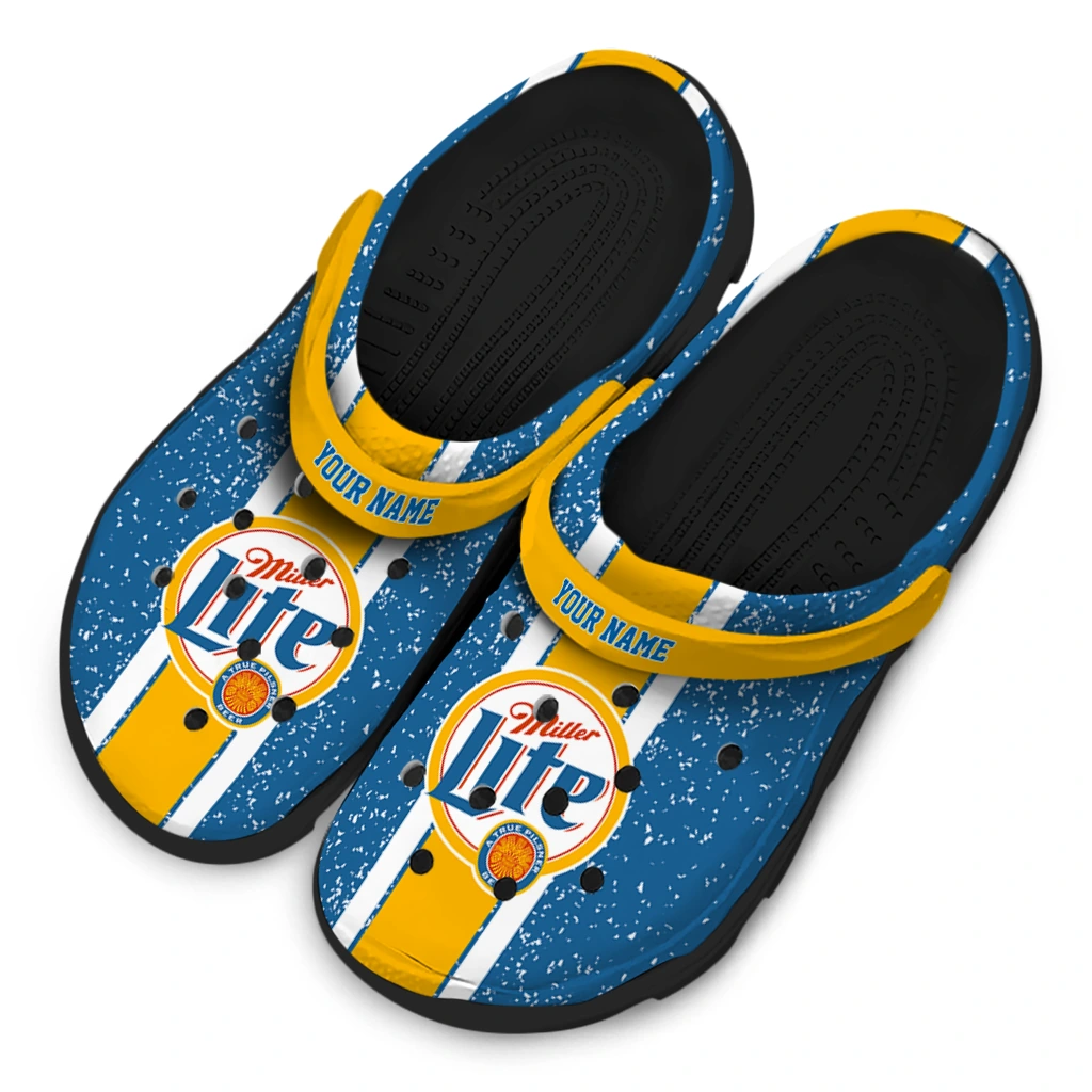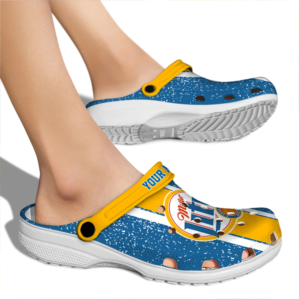 Personalized Miller Lite Milk Crest Blue Yellow Clogs
