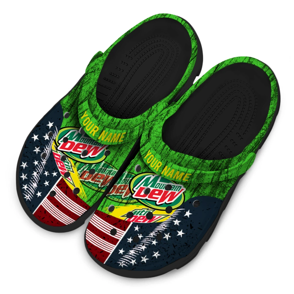 Personalized Mountain Dew Stars Cluster Green Red Clogs