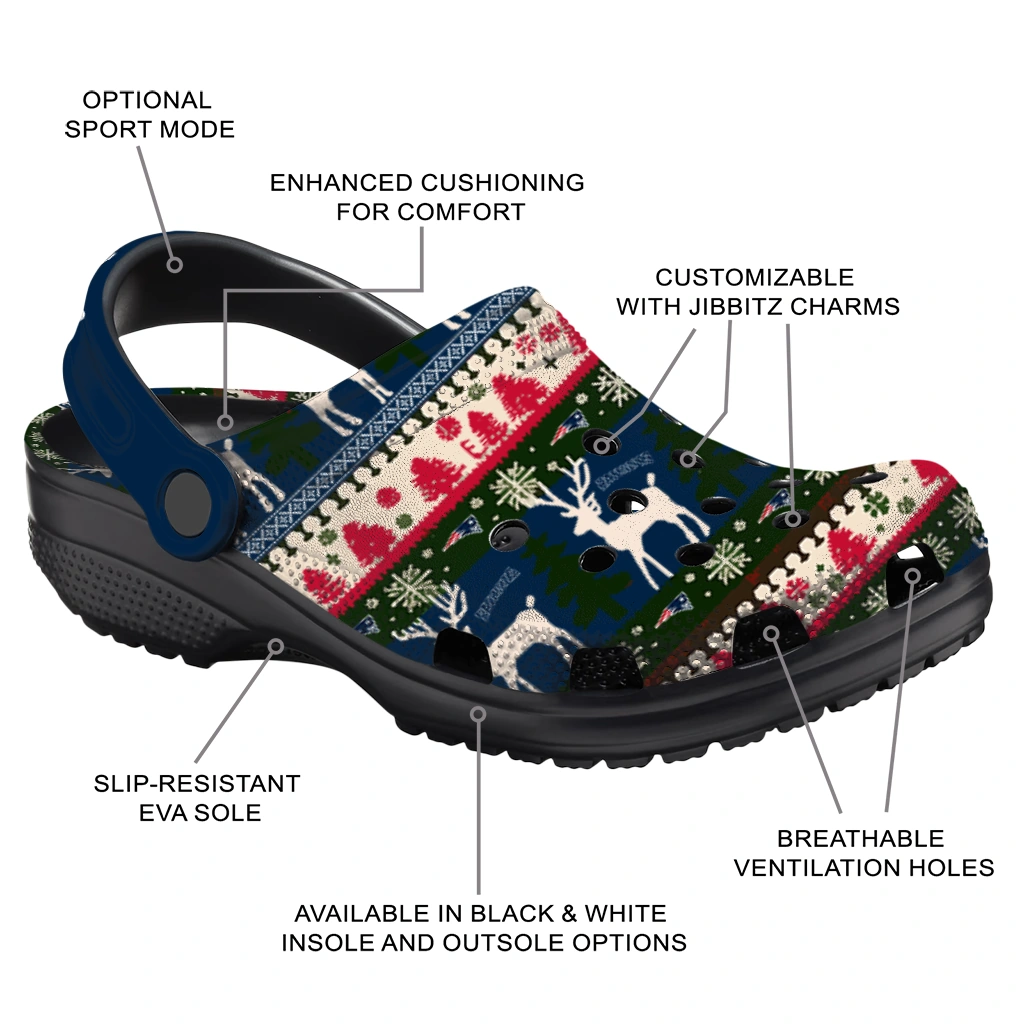 Comfort and Customization – What a Perfect Combination! Want footwear that stands out in the crowd? You found it! The Custom Fan Spirit Clogs – Personalized New England Patriots Christmas Motif Clogs blend the fantastic comfort of lightweight EVA with a design inspired by the biggest sports teams. They’re durable, supportive, and so easy to wear!