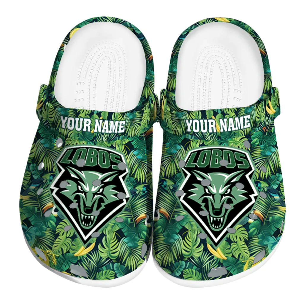 Personalized New Mexico Lobos Tropical Leaves Clogs