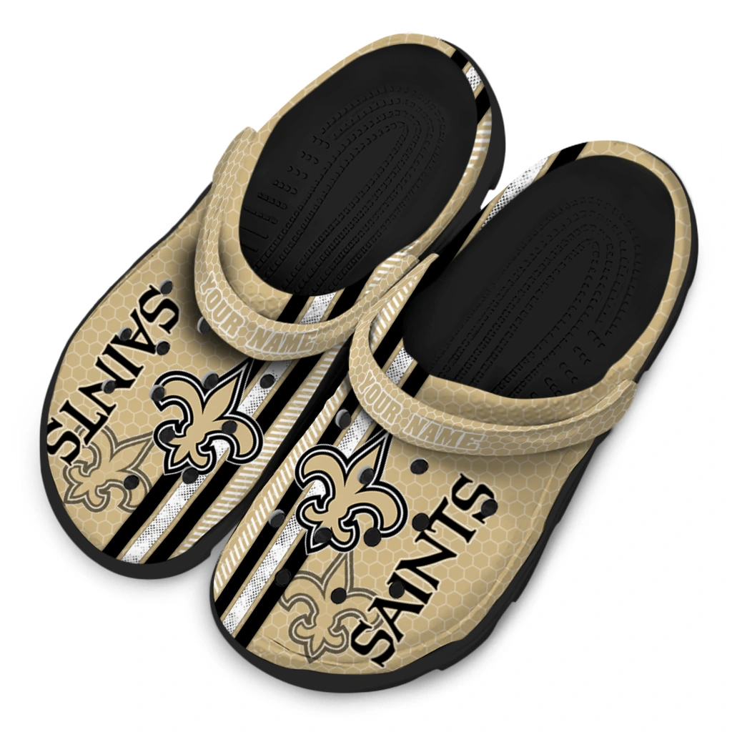 Personalized New Orleans Saints Contrasting Stripes Clogs
