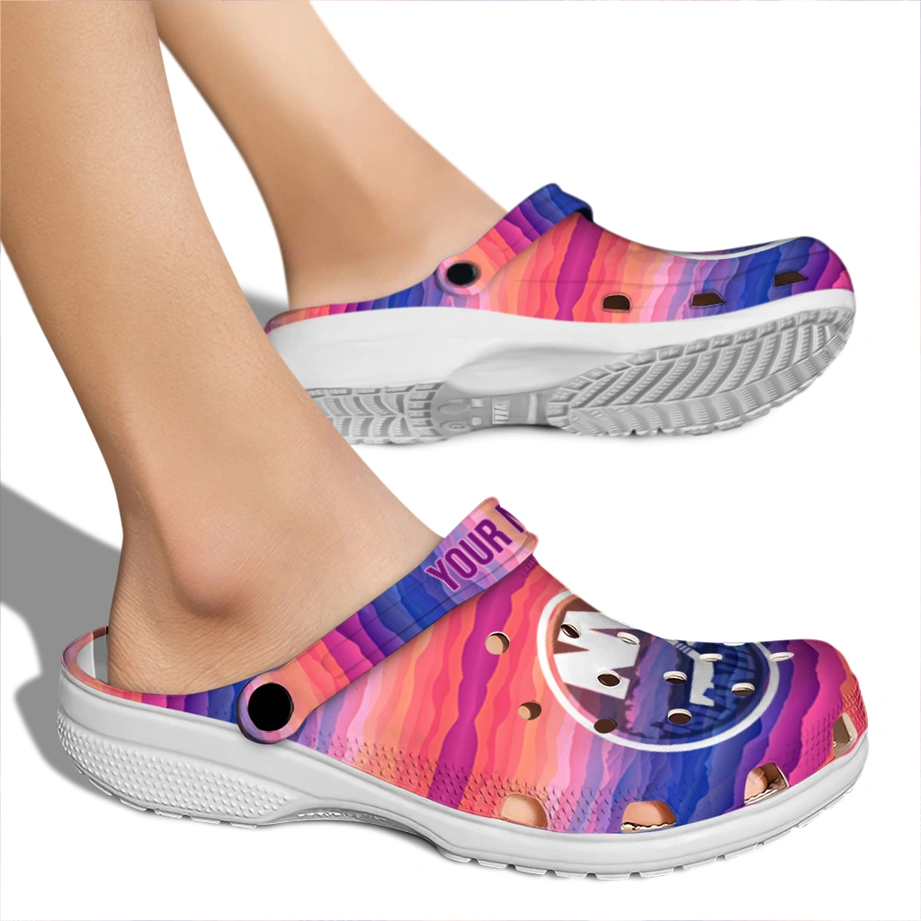 Your Clogs, Your Vibe, Your Name! Personalized New York Islanders Wavy Stripes Clogs from Hey Clogs lets you take sport team-inspired style to a personal level! Featuring the bold colors you love, these featherlight clogs deliver unbeatable, all-day comfort. What a great way to make them truly yours: add your name to the heel strap! Perfect for gifting or treating yourself, these personalized clogs are a fun, spirited way to step out in comfort.