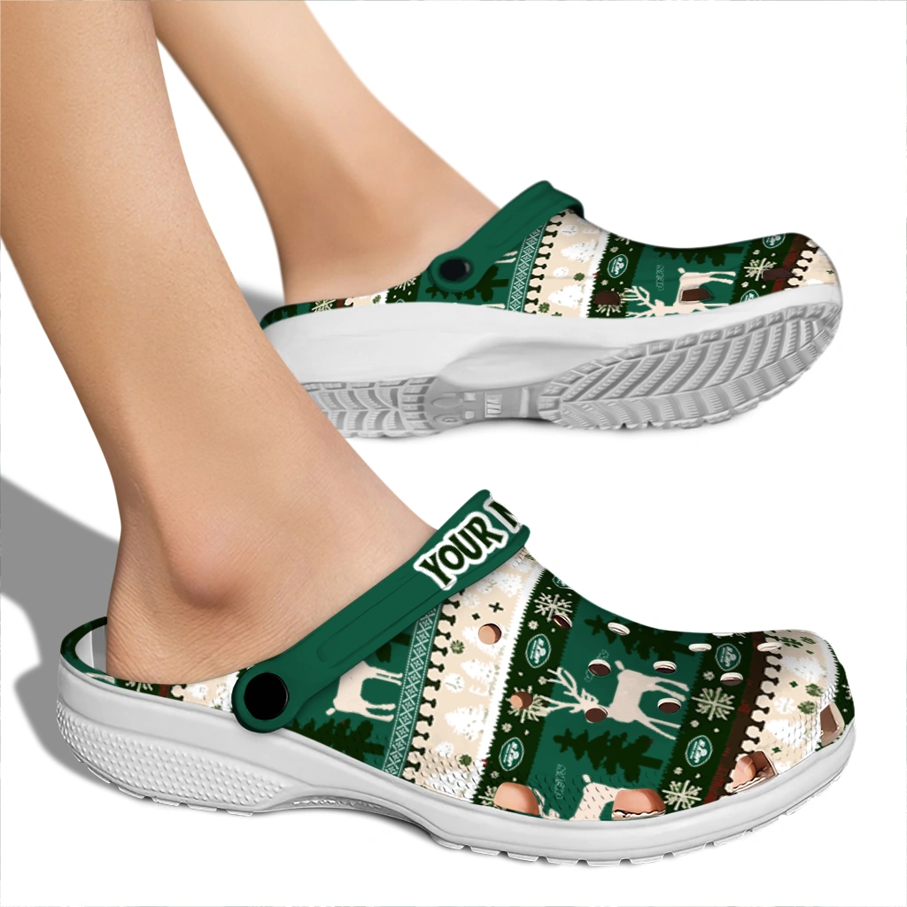 Your Clogs, Your Vibe, Your Name! Personalized New York Jets Christmas Motif Clogs from Hey Clogs lets you take sport team-inspired style to a personal level! Featuring the bold colors you love, these featherlight clogs deliver unbeatable, all-day comfort. What a great way to make them truly yours: add your name to the heel strap! Perfect for gifting or treating yourself, these personalized clogs are a fun, spirited way to step out in comfort.