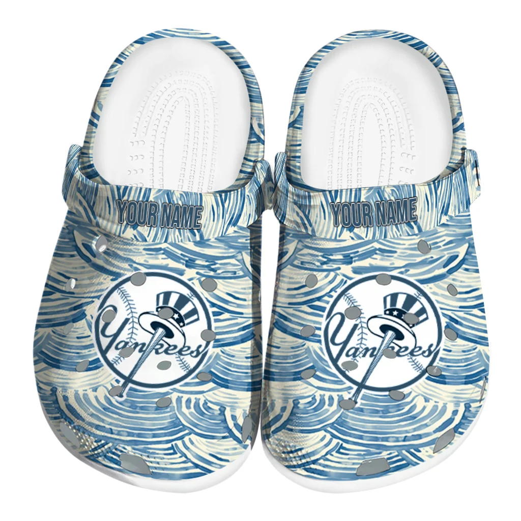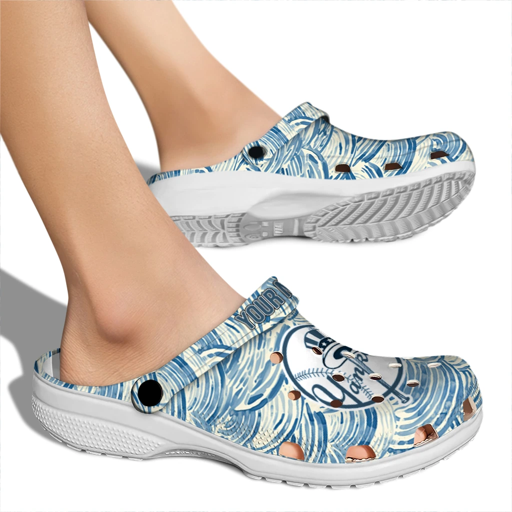Your Clogs, Your Vibe, Your Name! Personalized New York Yankees Sea Swirls Clogs from Hey Clogs lets you take sport team-inspired style to a personal level! Featuring the bold colors you love, these featherlight clogs deliver unbeatable, all-day comfort. What a great way to make them truly yours: add your name to the heel strap! Perfect for gifting or treating yourself, these personalized clogs are a fun, spirited way to step out in comfort.