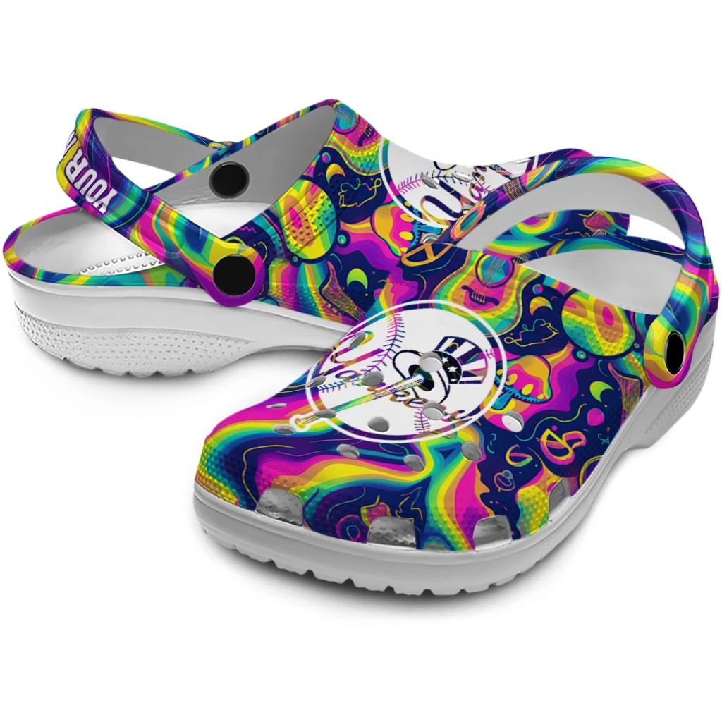 Personalized New York Yankees Swirling Mushrooms Clogs