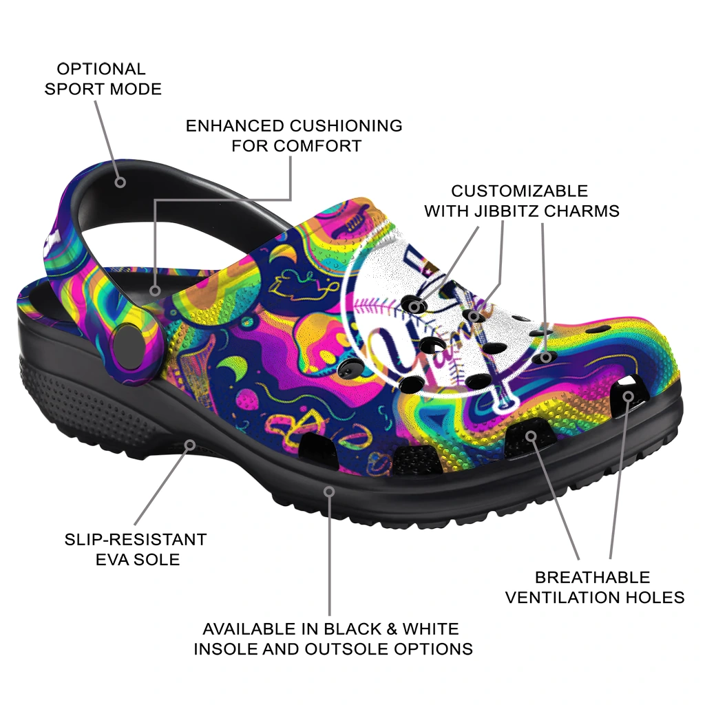 Your Clogs, Your Vibe, Your Name! Personalized New York Yankees Swirling Mushrooms Clogs from Hey Clogs lets you take sport team-inspired style to a personal level! Featuring the bold colors you love, these featherlight clogs deliver unbeatable, all-day comfort. What a great way to make them truly yours: add your name to the heel strap! Perfect for gifting or treating yourself, these personalized clogs are a fun, spirited way to step out in comfort.
