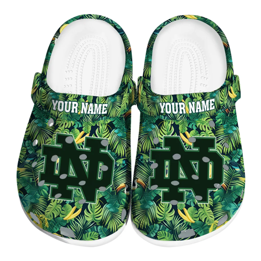 Personalized Notre Dame Fighting Irish Tropical Leaves Clogs