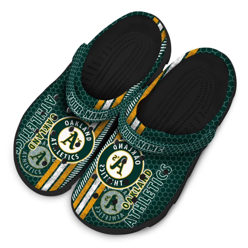Personalized Oakland Athletics Contrasting Stripes Clogs