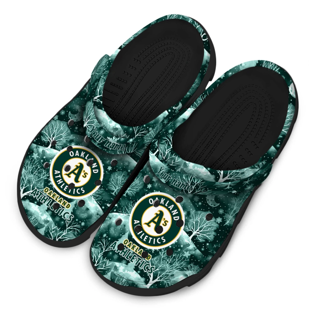 Your Clogs, Your Vibe, Your Name! Custom Oakland Athletics Deer Nightscape Clogs from Hey Clogs lets you take sport team-inspired style to a personal level! Featuring the bold colors you love, these featherlight clogs deliver unbeatable, all-day comfort. What a great way to make them truly yours: add your name to the heel strap! Perfect for gifting or treating yourself, these personalized clogs are a fun, spirited way to step out in comfort.