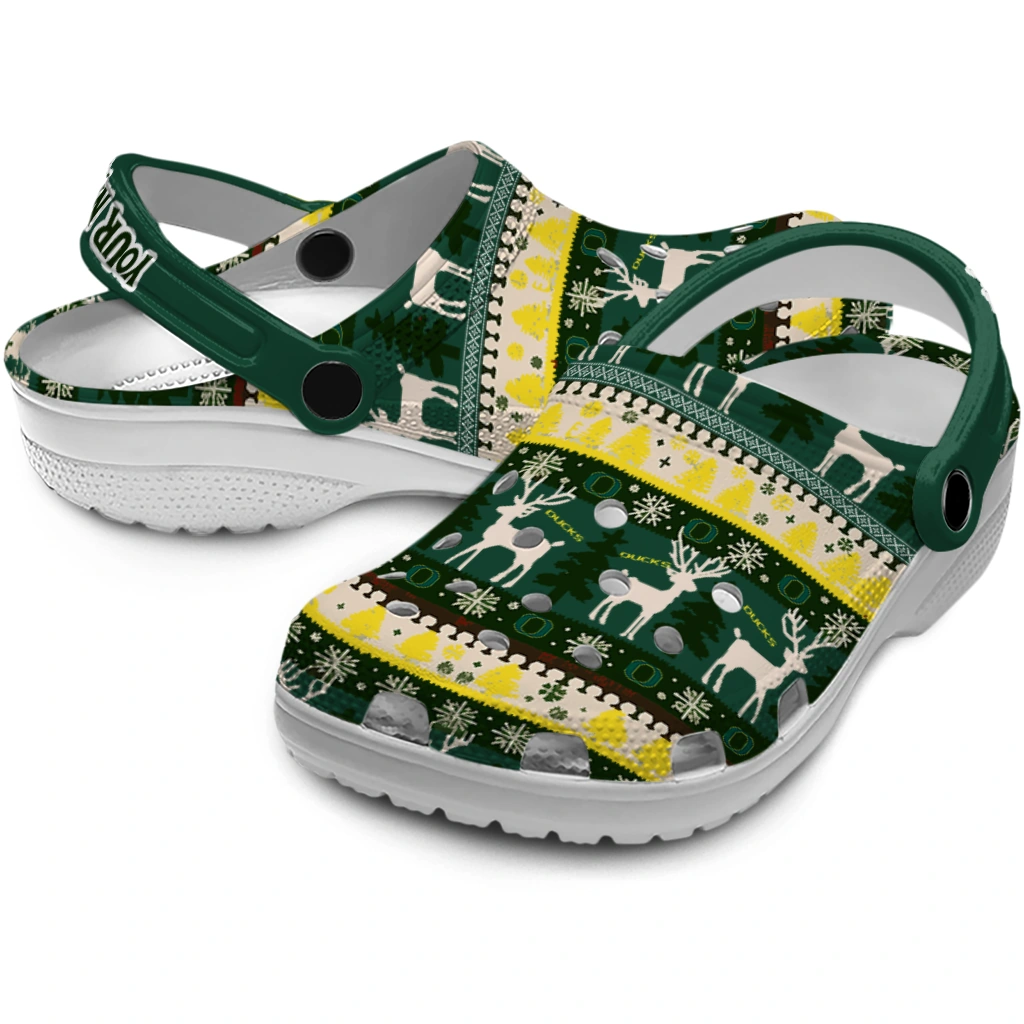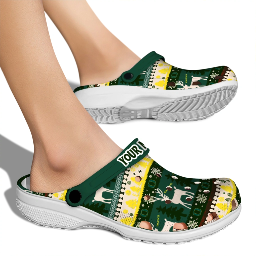 Personalized Oregon Ducks Christmas Motif Clogs