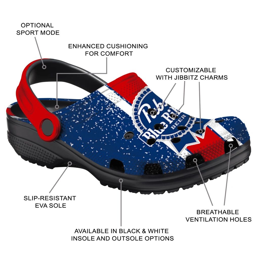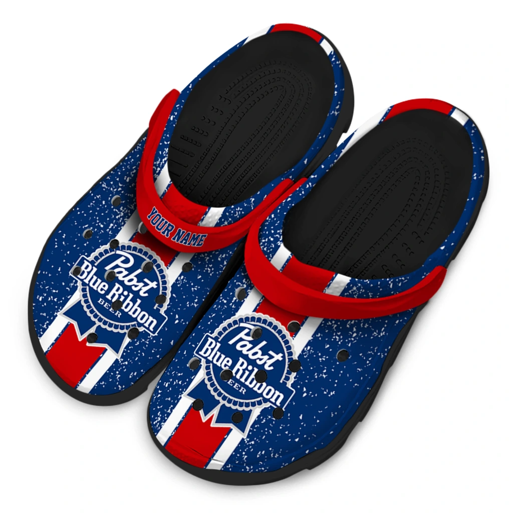 Personalized Pabst Blue Ribbon Lines Blue Red Clogs