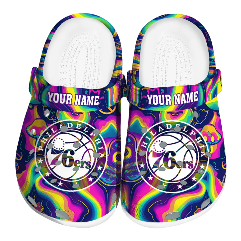 Personalized Philadelphia 76ers Swirling Mushrooms Clogs
