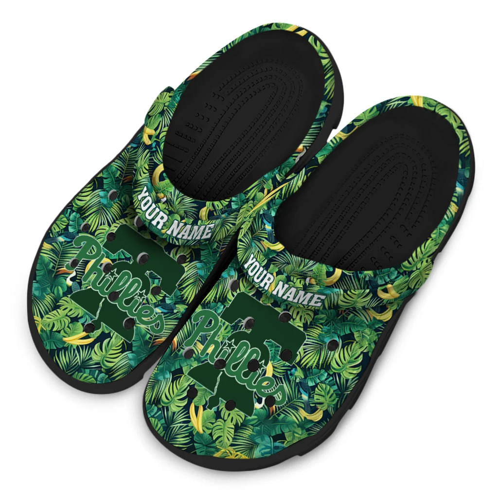 Personalized Philadelphia Phillies Tropical Leaves Clogs