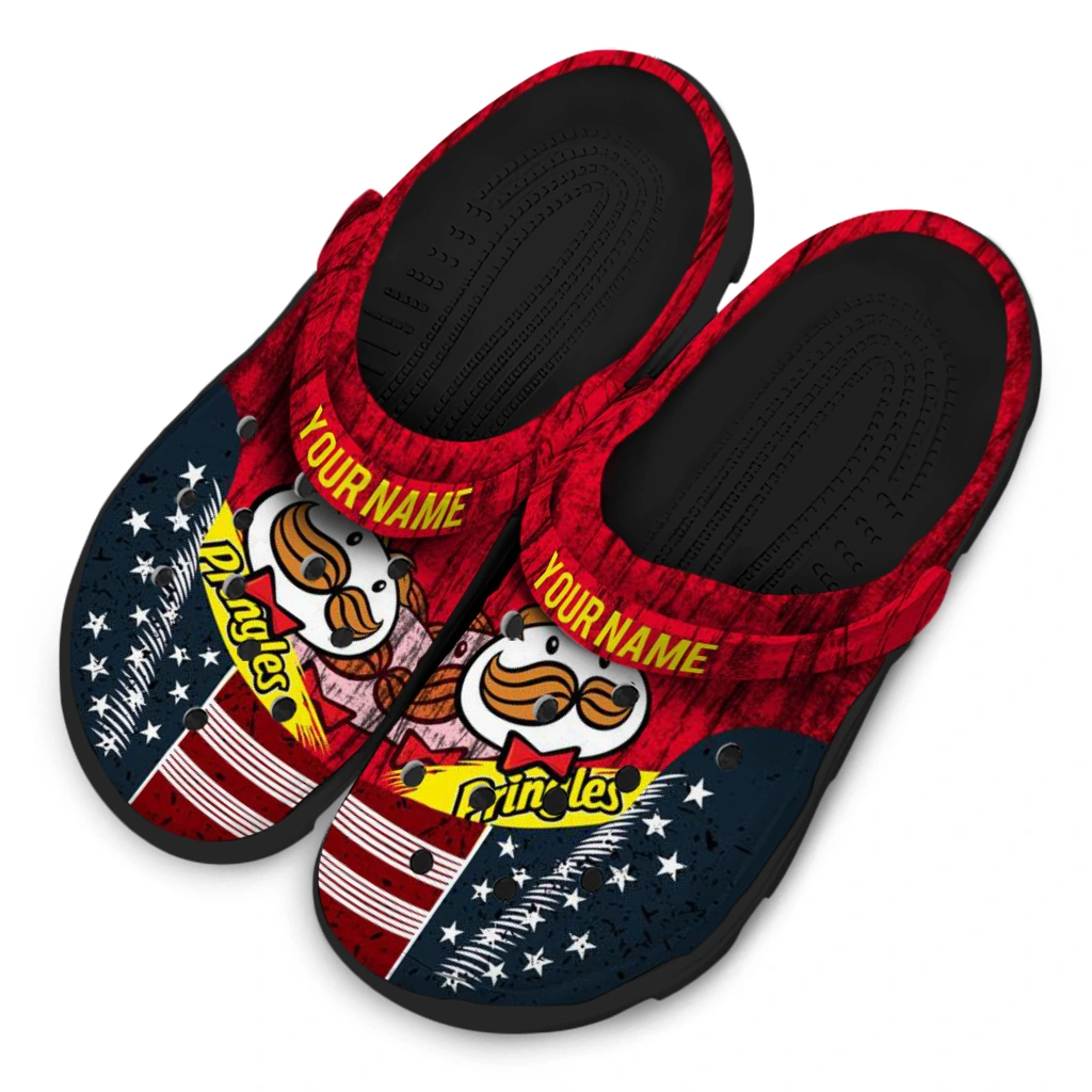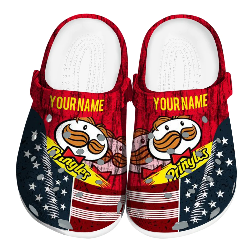The Personalized Pringles USA Patterns Red Navy Clogs from Hey Clogs slips on in seconds and keeps pace with your day – from slow mornings at home to city strolls and weekend getaways. Thoughtful design meets playful style with cheerful colors and prints that pop, adding personality to every step while delivering easy, breezy comfort and lightweight support wherever you wander. Want a signature touch? Customize yours with a name or initials for a one-of-one pair.