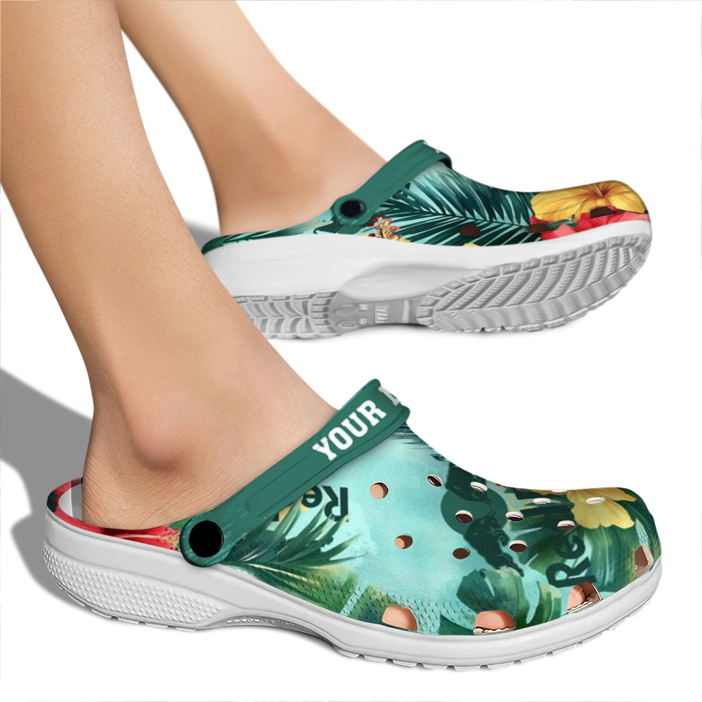 You’ll love it at first sight – and even more when it’s yours alone. Finish your clogs with a custom name or initials for a personal signature that stands out. Advanced UV printing keeps colors vivid without fading or peeling, so your look stays fresh from home lounging to errands, travel days, and lazy afternoons by the water. Easy to slip on and easy to love, the Personalized Red Bull Hawaii Green Red Clogs brings together practicality, personality, and the playful spirit of Hey Clogs.