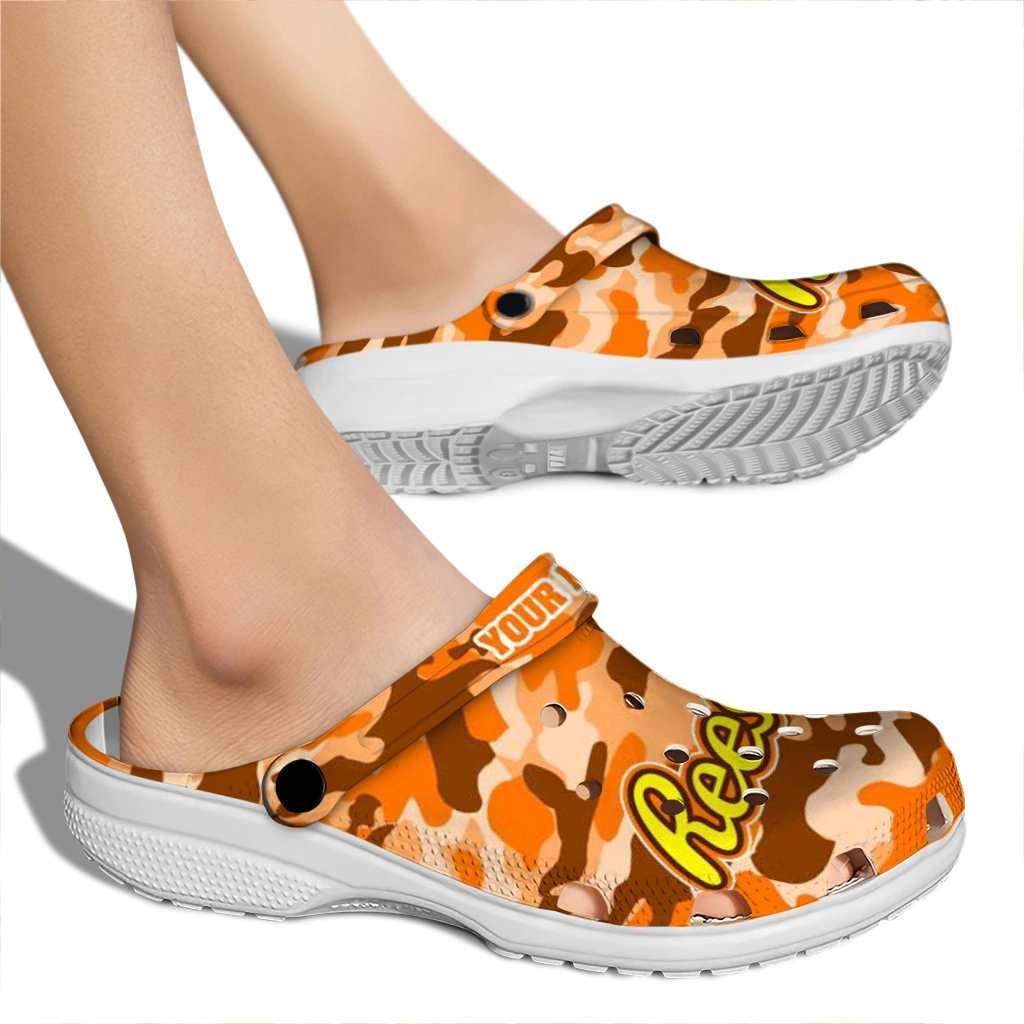 Can’t take your eyes off the Personalized Reese’s Orange Camouflage Orange Brown Clogs? We get it. This pair mixes sun-bright prints with cloud-soft comfort in a silhouette that’s effortless to style and even easier to wear. Crafted from premium EVA, it’s ultra-light yet supportive, quick to dry after splashy moments, and steady underfoot thanks to an anti-slip sole.