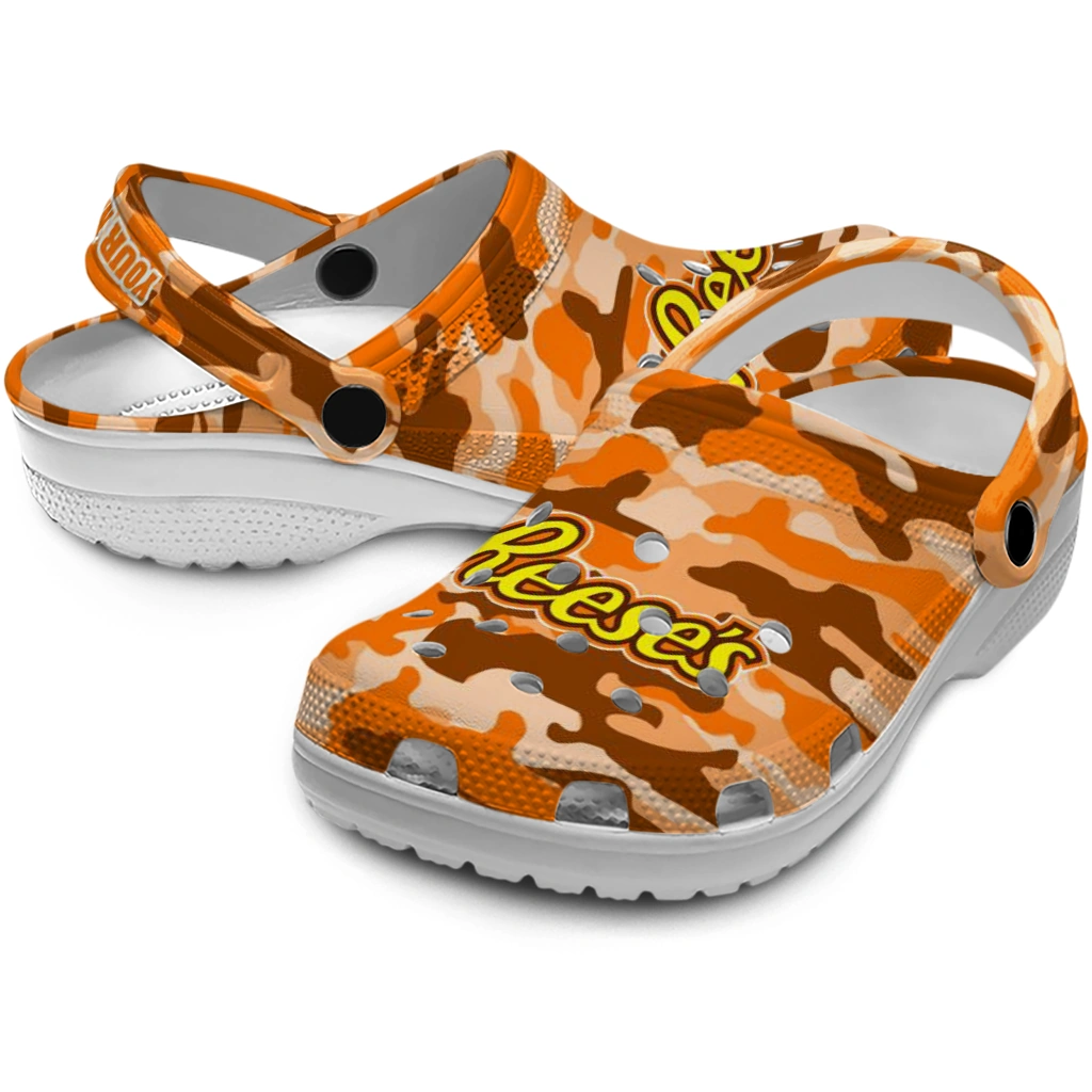 Personalized Reese’s Orange Camouflage Orange Brown Clogs