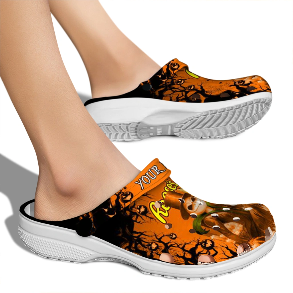 Can’t take your eyes off the Personalized Reese’s Pumpkin Faces Orange Black Clogs? We get it. This pair mixes sun-bright prints with cloud-soft comfort in a silhouette that’s effortless to style and even easier to wear. Crafted from premium EVA, it’s ultra-light yet supportive, quick to dry after splashy moments, and steady underfoot thanks to an anti-slip sole.