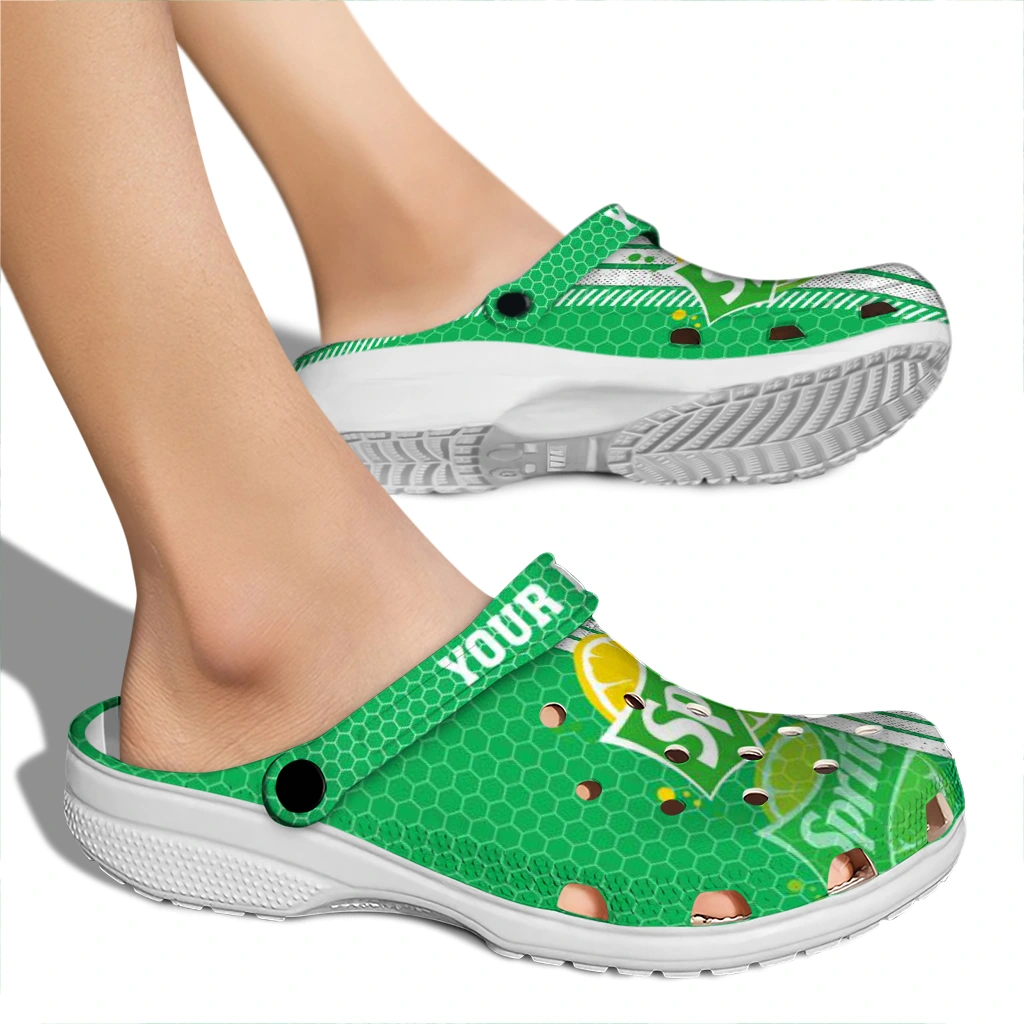 Personalized Sprite Green Design Green White Clogs