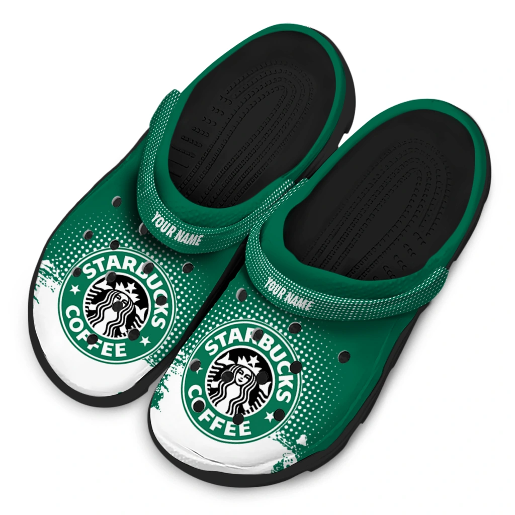 Be the first to review “Personalized Starbucks Logo Crest Green White Clogs”