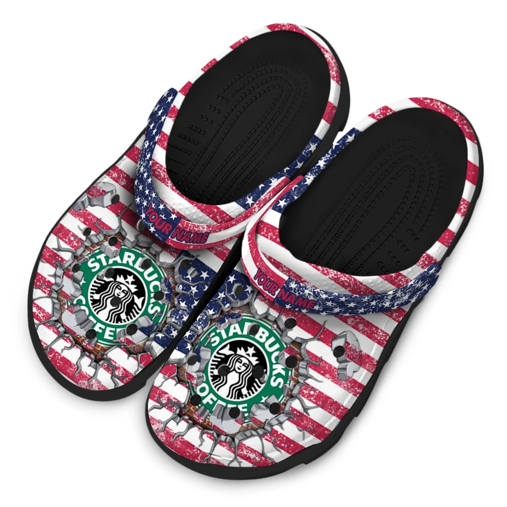 Personalized Starbucks US Flag Red Blue Clogs