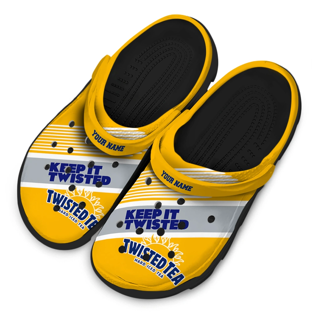 Personalized Twisted Tea Keep It Twisted Yellow Gray Clogs
