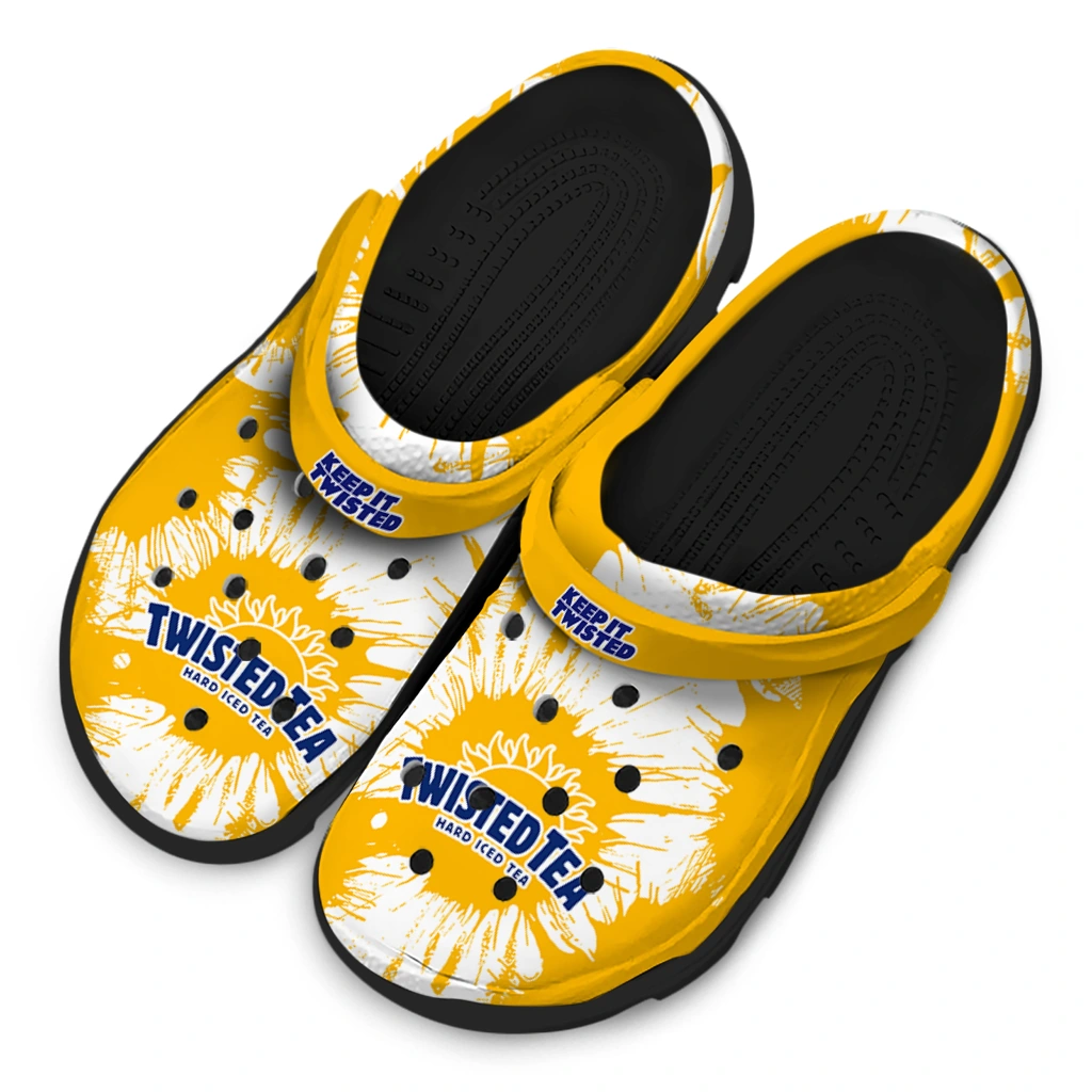 Personalized Twisted Tea Splash Burst Yellow White Clogs
