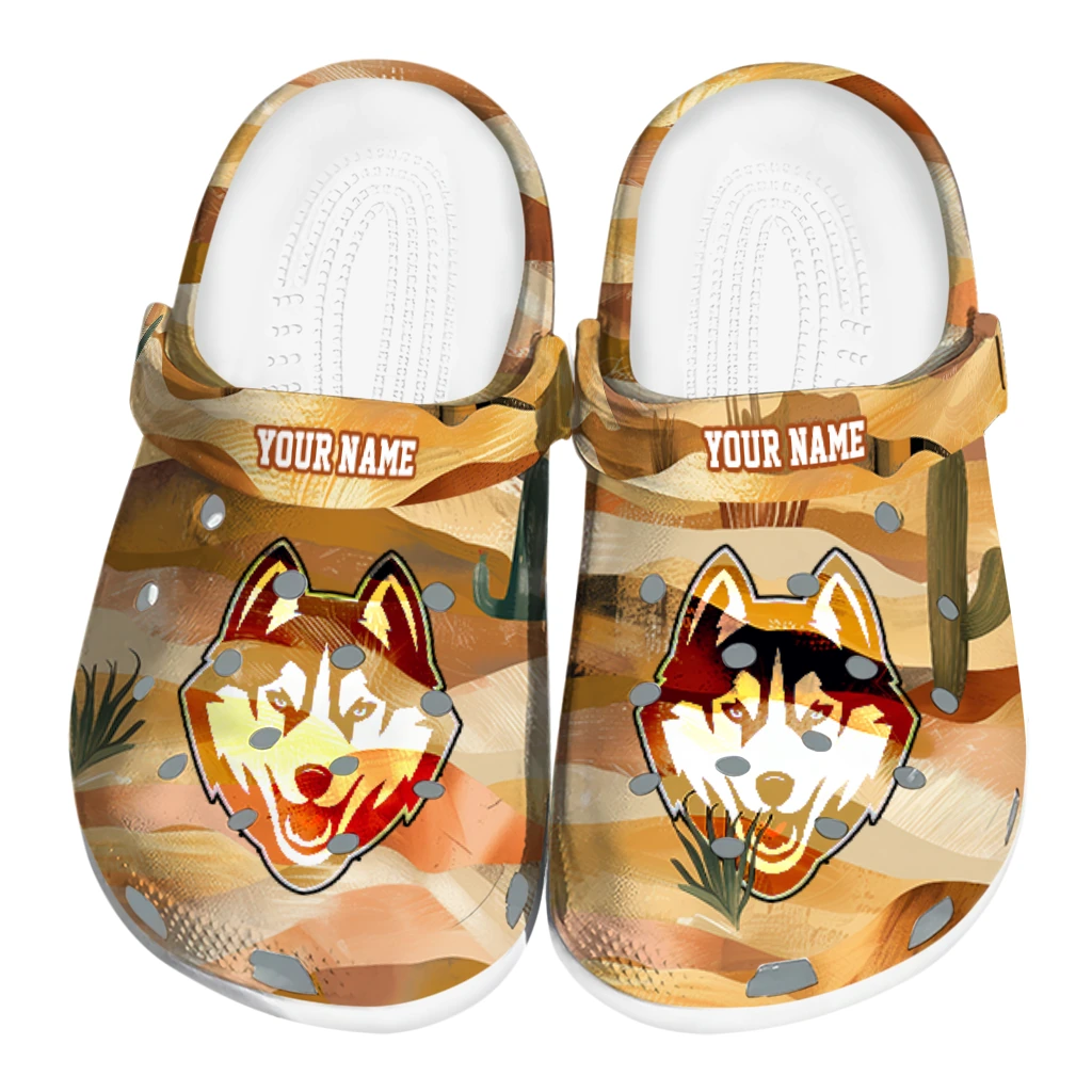 Your Clogs, Your Vibe, Your Name! Custom UConn Huskies Snowy Mountains Clogs from Hey Clogs lets you take sport team-inspired style to a personal level! Featuring the bold colors you love, these featherlight clogs deliver unbeatable, all-day comfort. What a great way to make them truly yours: add your name to the heel strap! Perfect for gifting or treating yourself, these personalized clogs are a fun, spirited way to step out in comfort.