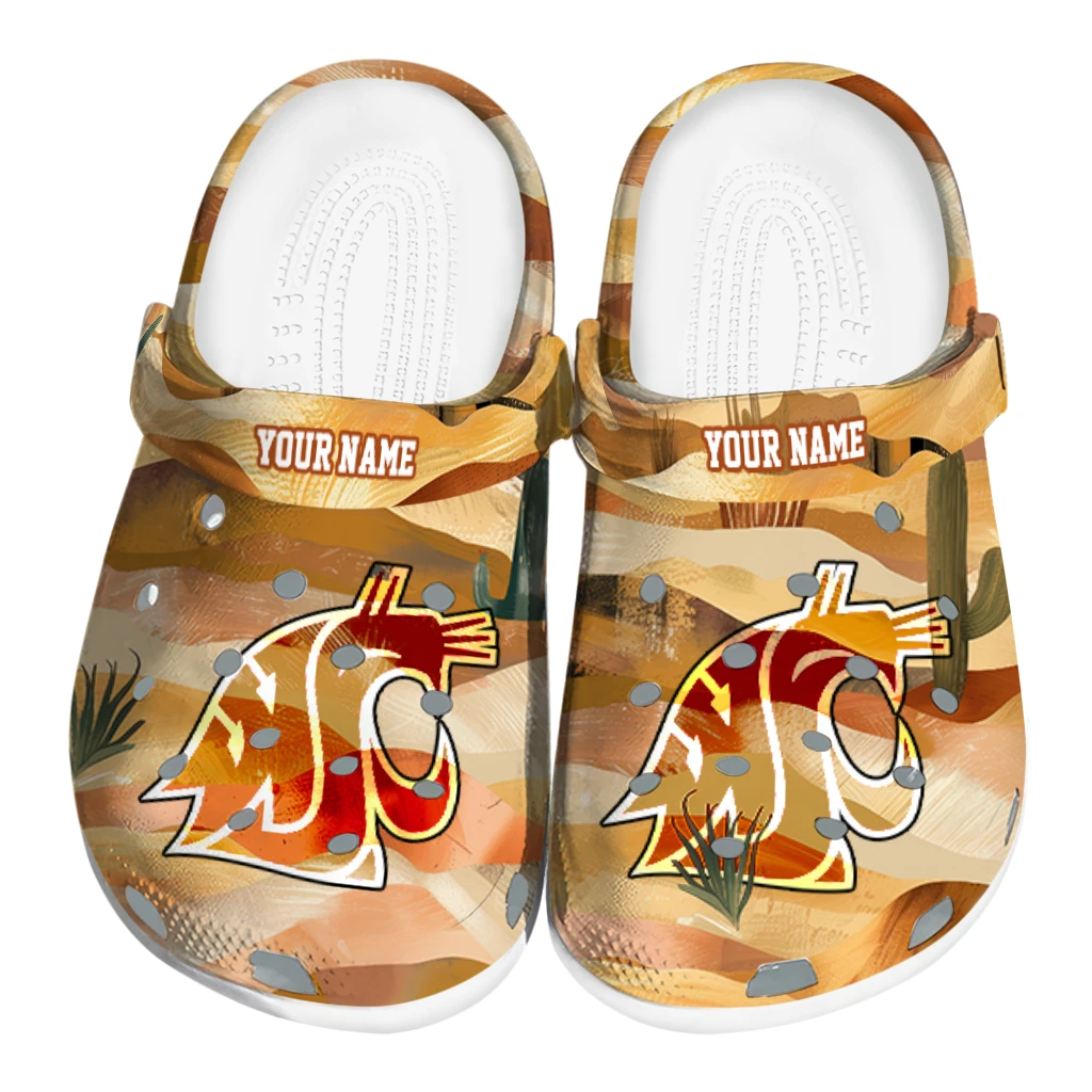 Comfort and Customization – What a Perfect Combination! Want footwear that stands out in the crowd? You found it! The Custom Fan Spirit Clogs – Personalized Washington State Cougars Desert Layers Clogs blend the fantastic comfort of lightweight EVA with a design inspired by the biggest sports teams. They’re durable, supportive, and so easy to wear!