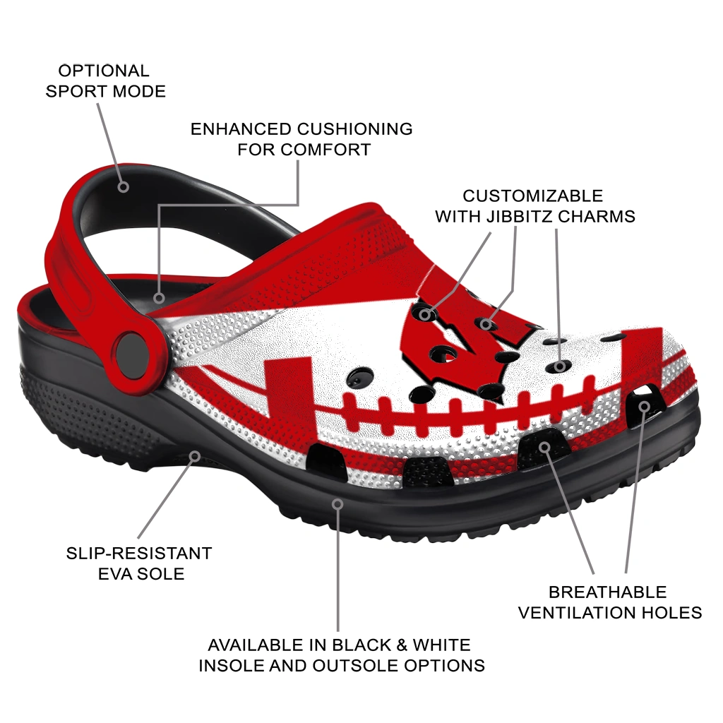 Personalized Wisconsin Badgers Football Motif Clogs