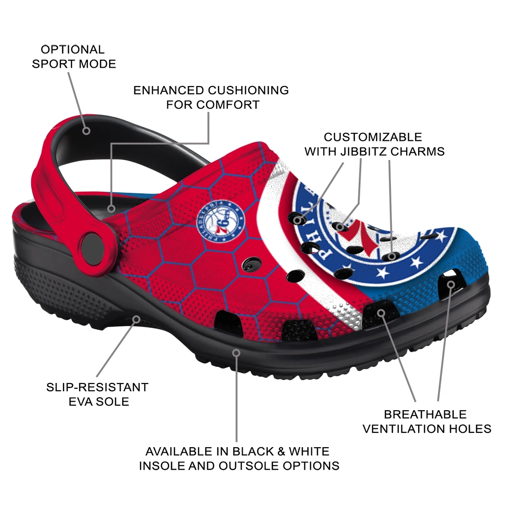 Philadelphia 76ers Hexagon Grid Clogs