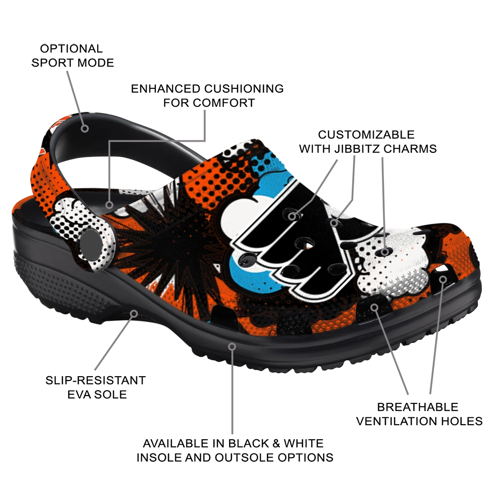 Show your spirit with the ultimate comfort clog! The All-Star Spirit Comfort Clogs – Philadelphia Flyers Cloud Splash Clogs are designed to keep pace with your active life while showcasing your love for the game. We've combined featherlight EVA material with bold, team-inspired color patterns! These clogs are a home run for versatility, offering slip-on ease, breezy comfort, and a vibrant look that travels effortlessly from the stadium parking lot to your sofa. What an easy way to cheer on your team!