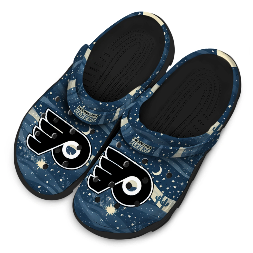 Show your spirit with the ultimate comfort clog! The All-Star Spirit Comfort Clogs – Philadelphia Flyers Night Cactus Clogs are designed to keep pace with your active life while showcasing your love for the game. We've combined featherlight EVA material with bold, team-inspired color patterns! These clogs are a home run for versatility, offering slip-on ease, breezy comfort, and a vibrant look that travels effortlessly from the stadium parking lot to your sofa. What an easy way to cheer on your team!