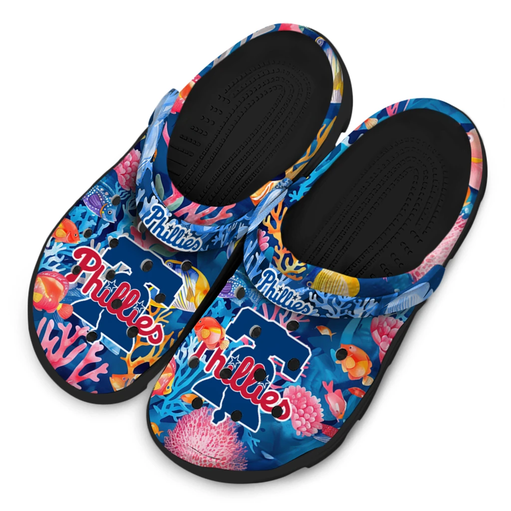 Show your spirit with the ultimate comfort clog! The All-Star Spirit Comfort Clogs – Philadelphia Phillies Ocean Wonders Clogs are designed to keep pace with your active life while showcasing your love for the game. We've combined featherlight EVA material with bold, team-inspired color patterns! These clogs are a home run for versatility, offering slip-on ease, breezy comfort, and a vibrant look that travels effortlessly from the stadium parking lot to your sofa. What an easy way to cheer on your team!