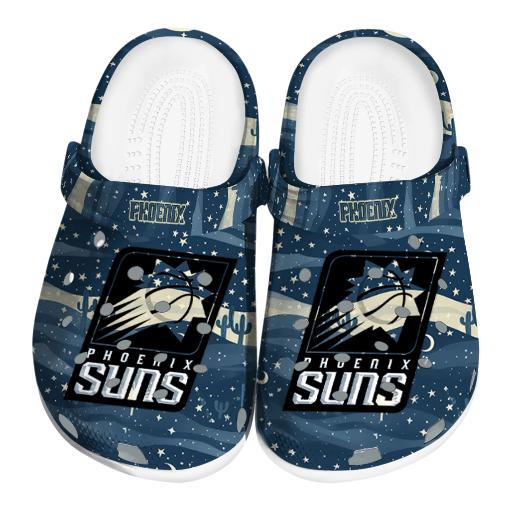 Show your spirit with the ultimate comfort clog! The All-Star Spirit Comfort Clogs – Phoenix Suns Night Cactus Clogs are designed to keep pace with your active life while showcasing your love for the game. We've combined featherlight EVA material with bold, team-inspired color patterns! These clogs are a home run for versatility, offering slip-on ease, breezy comfort, and a vibrant look that travels effortlessly from the stadium parking lot to your sofa. What an easy way to cheer on your team!