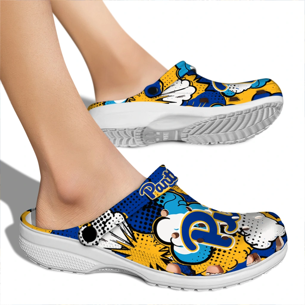 Show your spirit with the ultimate comfort clog! The All-Star Spirit Comfort Clogs – Pittsburgh Panthers Cloud Splash Clogs are designed to keep pace with your active life while showcasing your love for the game. We've combined featherlight EVA material with bold, team-inspired color patterns! These clogs are a home run for versatility, offering slip-on ease, breezy comfort, and a vibrant look that travels effortlessly from the stadium parking lot to your sofa. What an easy way to cheer on your team!