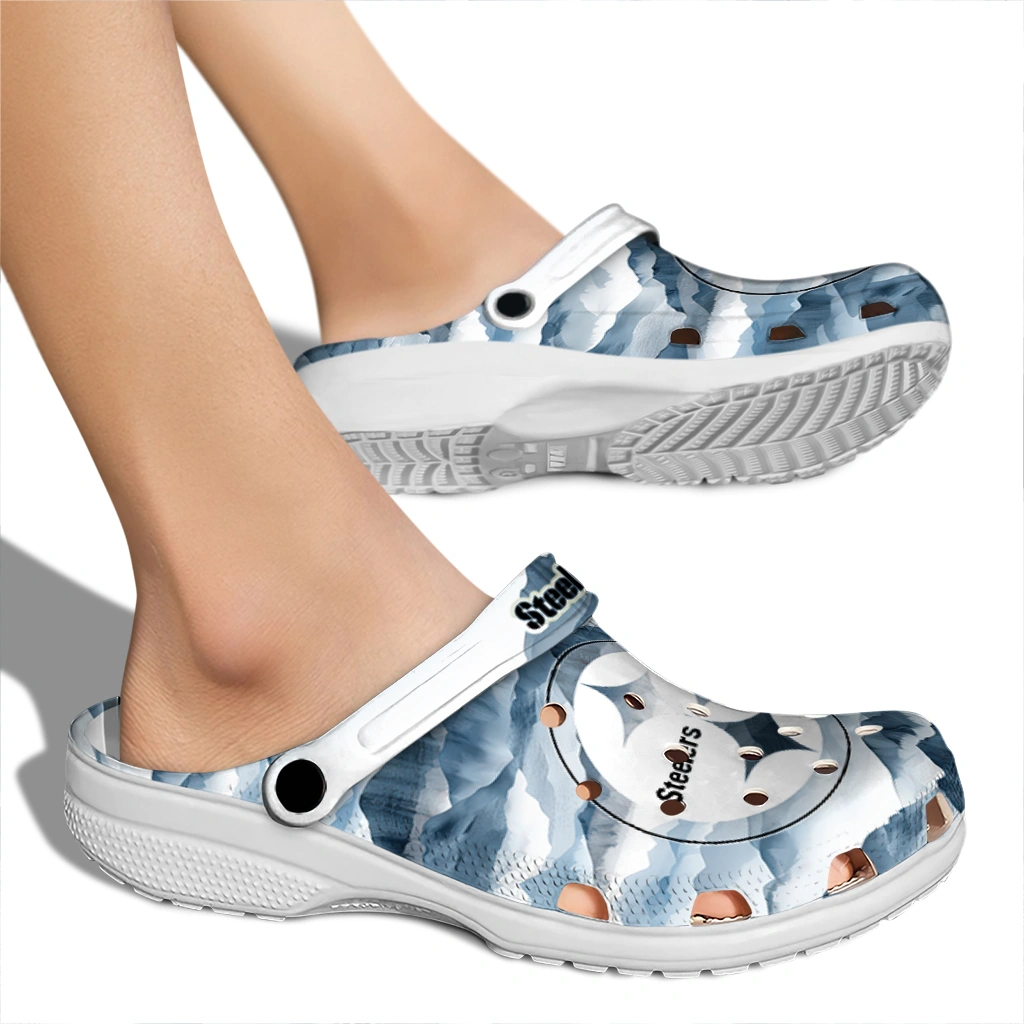 Your Clogs, Your Vibe, Your Name! Custom Pittsburgh Steelers Snowy Mountains Clogs from Hey Clogs lets you take sport team-inspired style to a personal level! Featuring the bold colors you love, these featherlight clogs deliver unbeatable, all-day comfort. What a great way to make them truly yours: add your name to the heel strap! Perfect for gifting or treating yourself, these personalized clogs are a fun, spirited way to step out in comfort.