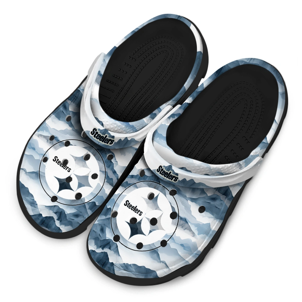 Show your spirit with the ultimate comfort clog! The All-Star Spirit Comfort Clogs – Pittsburgh Steelers Mountain Peaks Clogs are designed to keep pace with your active life while showcasing your love for the game. We've combined featherlight EVA material with bold, team-inspired color patterns! These clogs are a home run for versatility, offering slip-on ease, breezy comfort, and a vibrant look that travels effortlessly from the stadium parking lot to your sofa. What an easy way to cheer on your team!