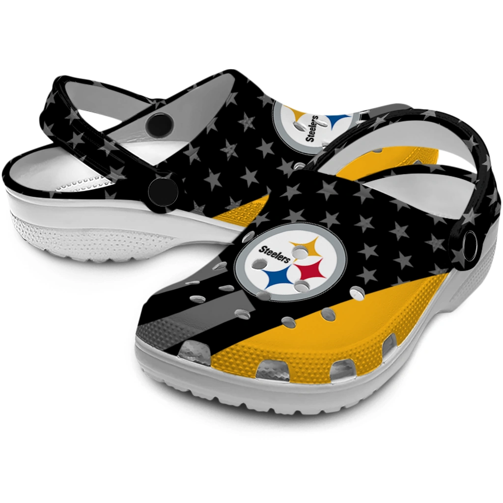 Pittsburgh Steelers Stellar Stripes Theme Clogs