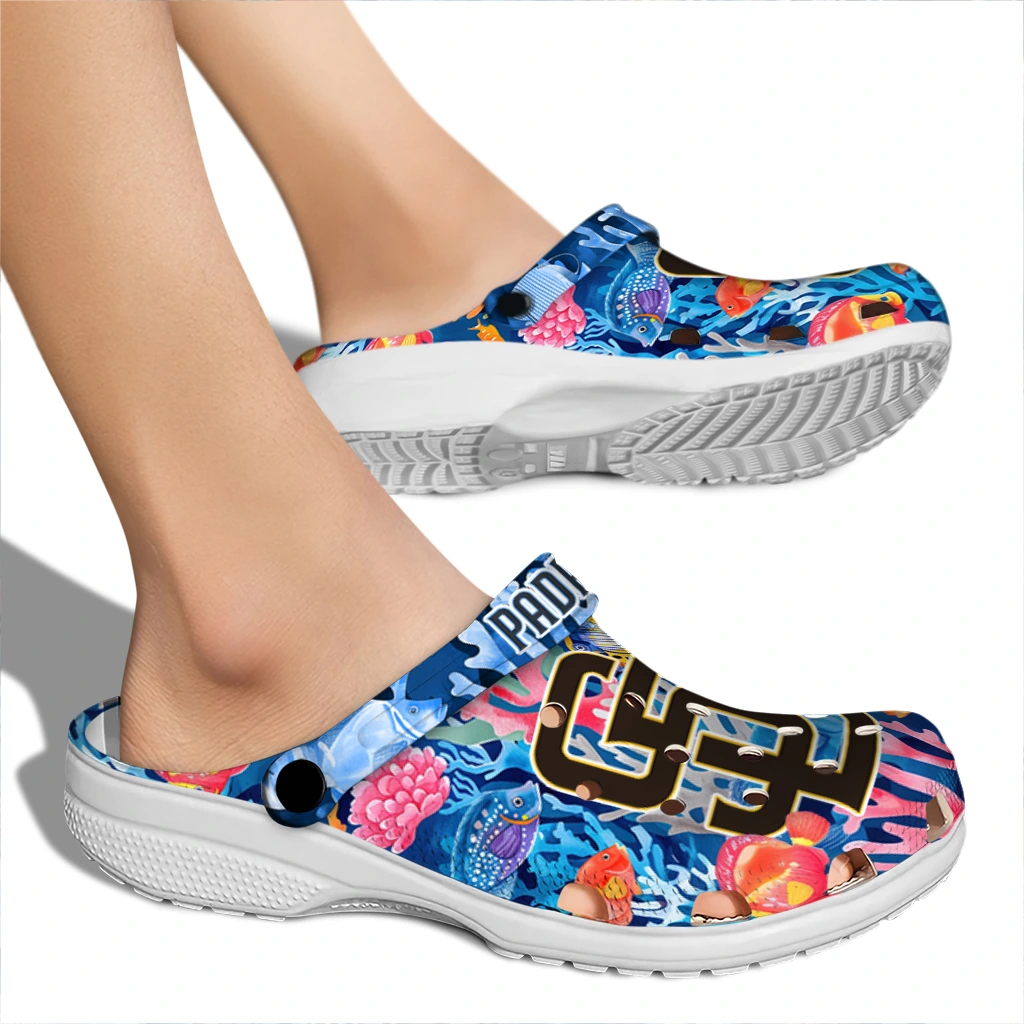 Show your spirit with the ultimate comfort clog! The All-Star Spirit Comfort Clogs – San Diego Padres Ocean Wonders Clogs are designed to keep pace with your active life while showcasing your love for the game. We've combined featherlight EVA material with bold, team-inspired color patterns! These clogs are a home run for versatility, offering slip-on ease, breezy comfort, and a vibrant look that travels effortlessly from the stadium parking lot to your sofa. What an easy way to cheer on your team!