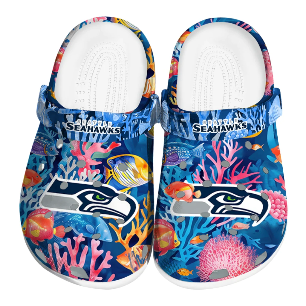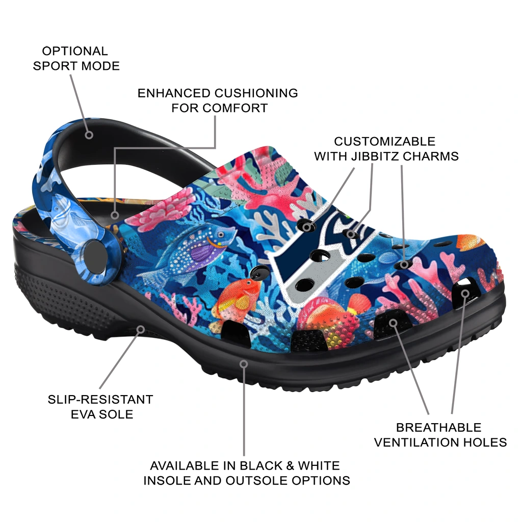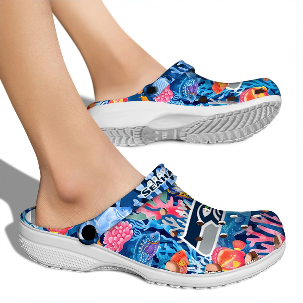 Show your spirit with the ultimate comfort clog! The All-Star Spirit Comfort Clogs – Seattle Seahawks Ocean Wonders Clogs are designed to keep pace with your active life while showcasing your love for the game. We've combined featherlight EVA material with bold, team-inspired color patterns! These clogs are a home run for versatility, offering slip-on ease, breezy comfort, and a vibrant look that travels effortlessly from the stadium parking lot to your sofa. What an easy way to cheer on your team!