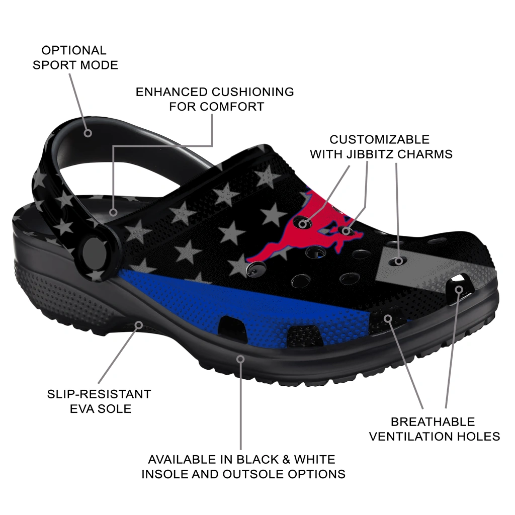 Show your spirit with the ultimate comfort clog! The All-Star Spirit Comfort Clogs – SMU Mustangs Stellar Stripes Theme Clogs are designed to keep pace with your active life while showcasing your love for the game. We’ve combined featherlight EVA material with bold, team-inspired color patterns! These clogs are a home run for versatility, offering slip-on ease, breezy comfort, and a vibrant look that travels effortlessly from the stadium parking lot to your sofa. What an easy way to cheer on your team!