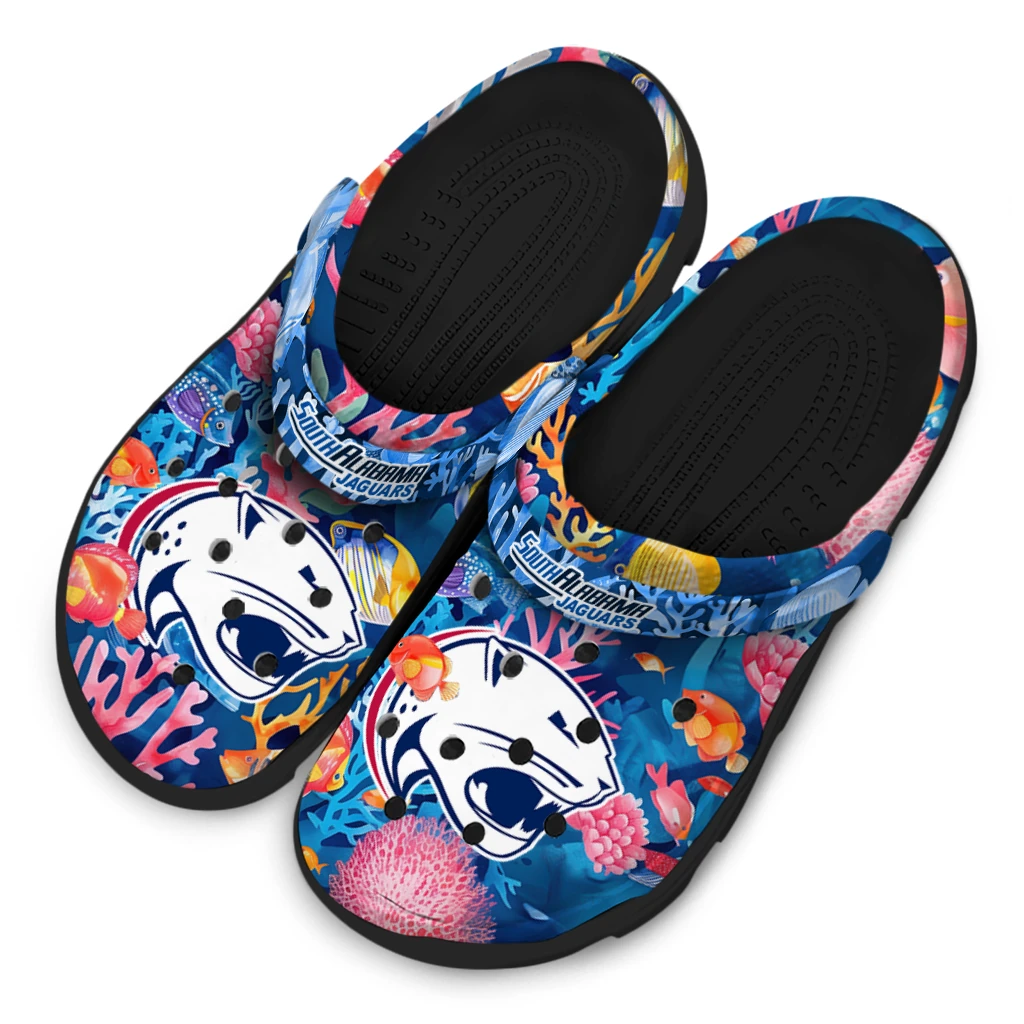 Show your spirit with the ultimate comfort clog! The All-Star Spirit Comfort Clogs – South Alabama Jaguars Ocean Wonders Clogs are designed to keep pace with your active life while showcasing your love for the game. We've combined featherlight EVA material with bold, team-inspired color patterns! These clogs are a home run for versatility, offering slip-on ease, breezy comfort, and a vibrant look that travels effortlessly from the stadium parking lot to your sofa. What an easy way to cheer on your team!