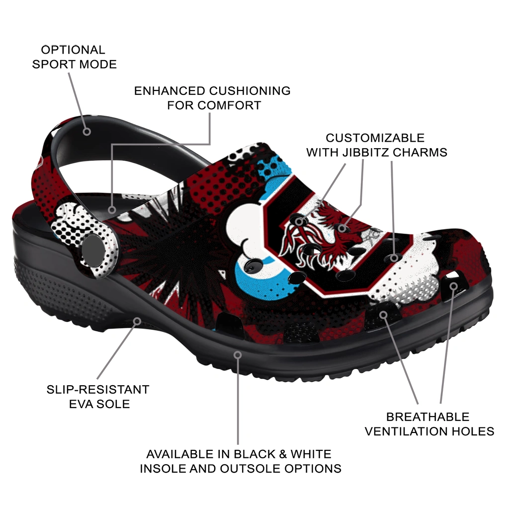 Show your spirit with the ultimate comfort clog! The All-Star Spirit Comfort Clogs – South Carolina Gamecocks Cloud Splash Clogs are designed to keep pace with your active life while showcasing your love for the game. We've combined featherlight EVA material with bold, team-inspired color patterns! These clogs are a home run for versatility, offering slip-on ease, breezy comfort, and a vibrant look that travels effortlessly from the stadium parking lot to your sofa. What an easy way to cheer on your team!
