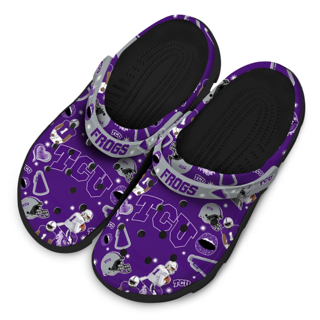 Show your spirit with the ultimate comfort clog! The All-Star Spirit Comfort Clogs – TCU Horned Frogs Football Icons Clogs are designed to keep pace with your active life while showcasing your love for the game. We’ve combined featherlight EVA material with bold, team-inspired color patterns! These clogs are a home run for versatility, offering slip-on ease, breezy comfort, and a vibrant look that travels effortlessly from the stadium parking lot to your sofa. What an easy way to cheer on your team!