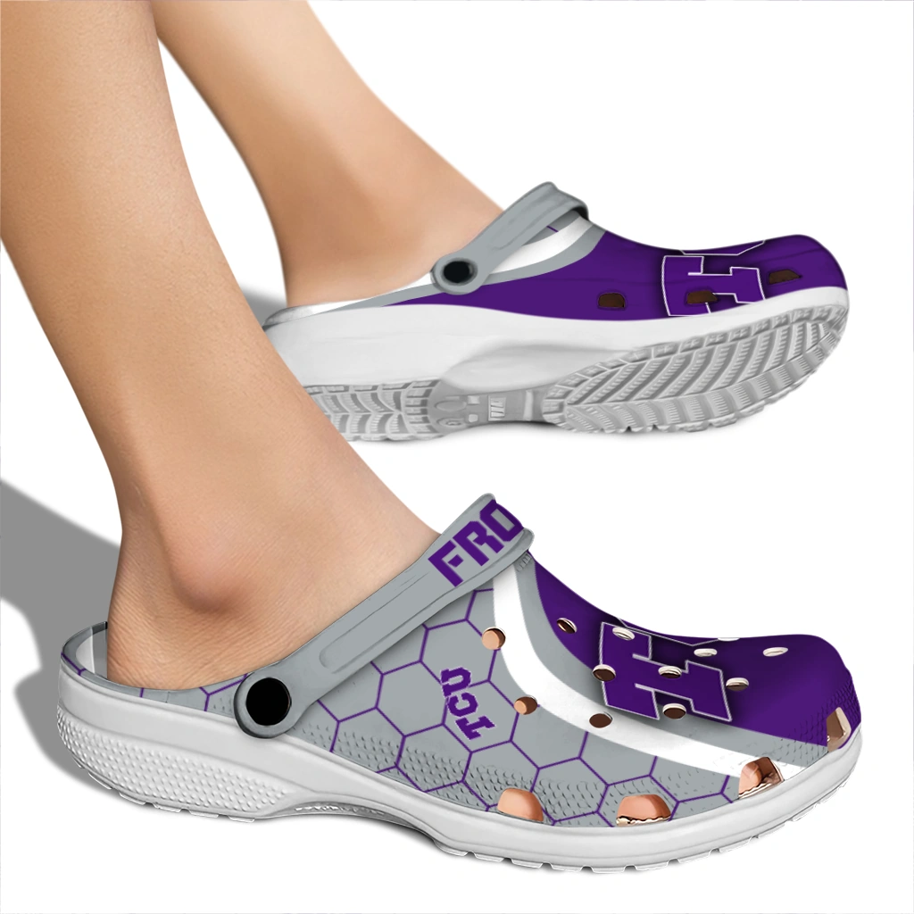 Show your spirit with the ultimate comfort clog! The All-Star Spirit Comfort Clogs – TCU Horned Frogs Hexagon Grid Clogs are designed to keep pace with your active life while showcasing your love for the game. We’ve combined featherlight EVA material with bold, team-inspired color patterns! These clogs are a home run for versatility, offering slip-on ease, breezy comfort, and a vibrant look that travels effortlessly from the stadium parking lot to your sofa. What an easy way to cheer on your team!