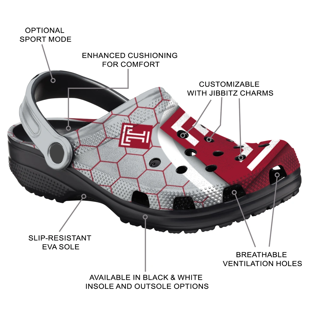 Show your spirit with the ultimate comfort clog! The All-Star Spirit Comfort Clogs – Temple Owls Hexagon Grid Clogs are designed to keep pace with your active life while showcasing your love for the game. We’ve combined featherlight EVA material with bold, team-inspired color patterns! These clogs are a home run for versatility, offering slip-on ease, breezy comfort, and a vibrant look that travels effortlessly from the stadium parking lot to your sofa. What an easy way to cheer on your team!